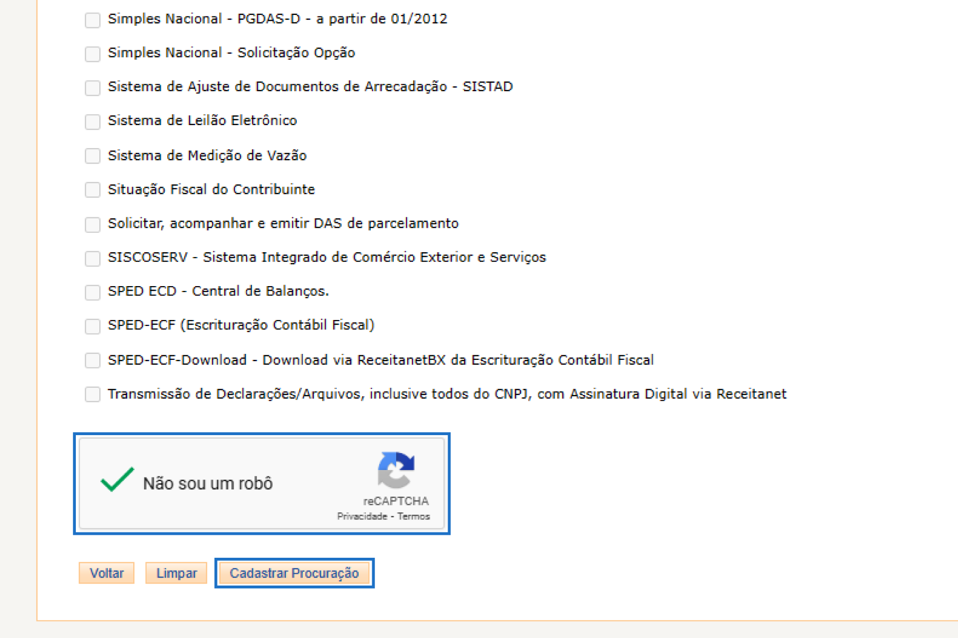 Clique no seu regime de tributação para visualizar quais permissões devem ser selecionadas no e-CAC.