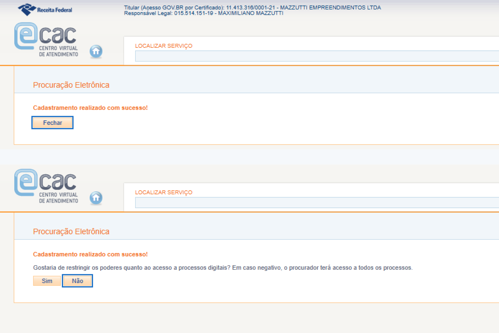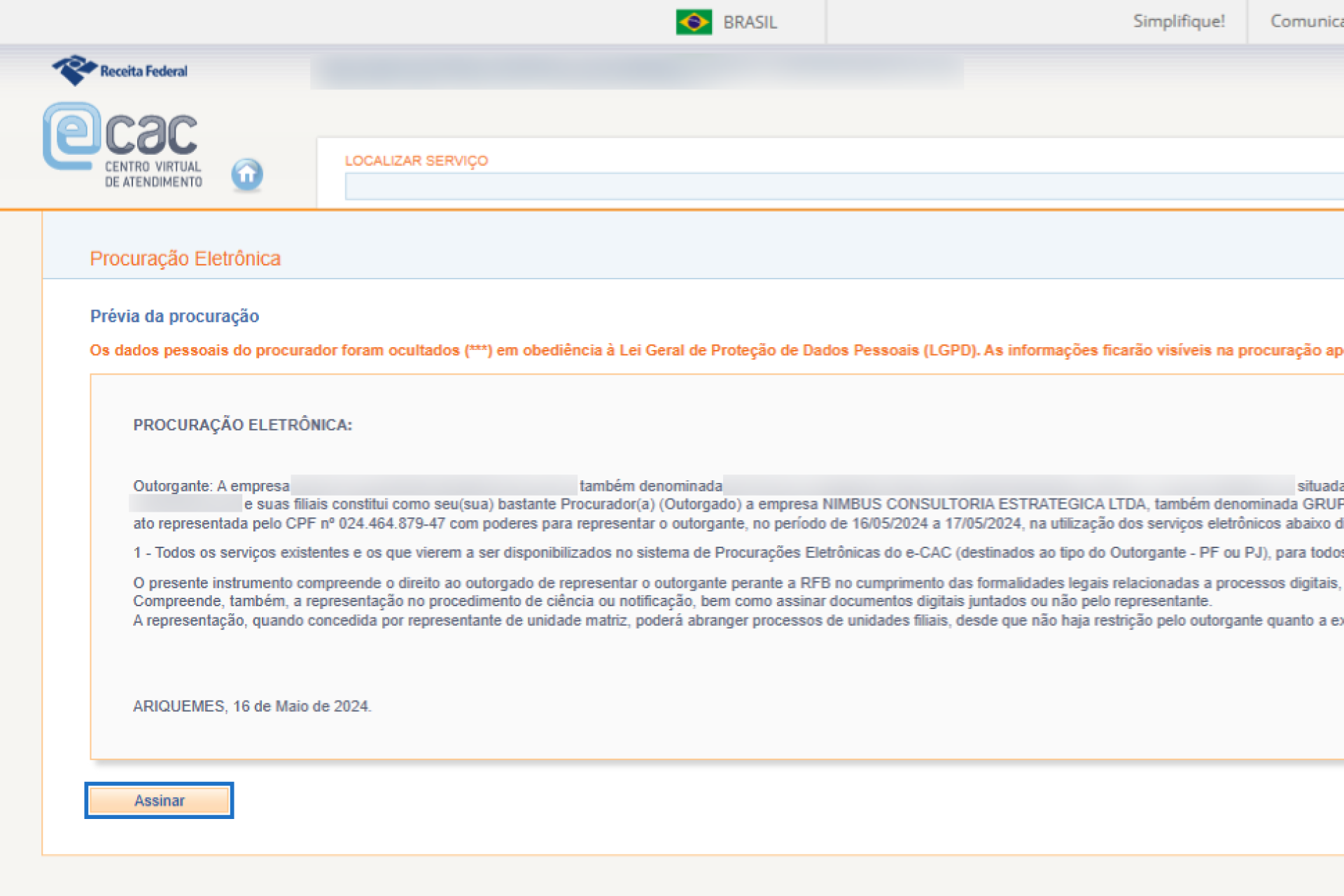 Não. Os poderes são delimitados pelas permissões concedidas no e-CAC, não havendo acesso irrestrito nem atuação fora do escopo autorizado.